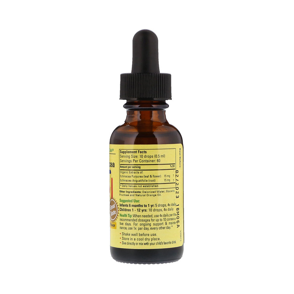 La Echinacea de ChildLife está hecha especialmente para bebés y niños. No contiene alcohol y es cultivada orgánicamente y saborizada con aceite esencial de naranja dulce natural.